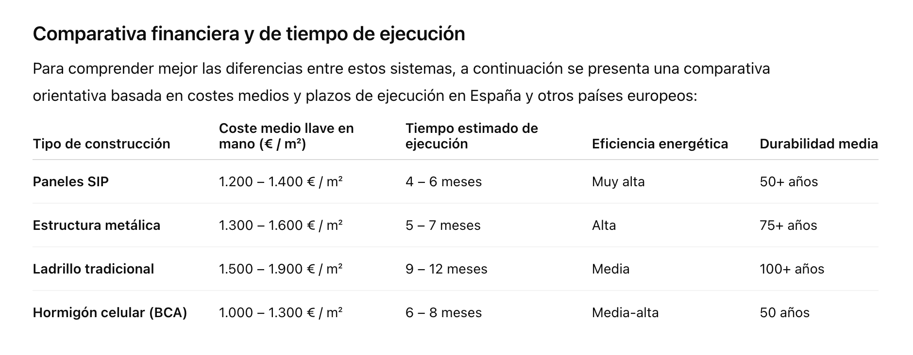 Coste ligeramente superior frente a sistemas SIP o de ladrillo.